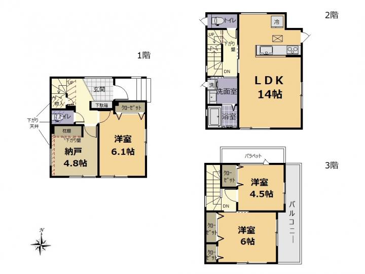 | 間取り | 3SLDK | 建物構造 | 3階建て 構造:木造 |