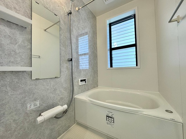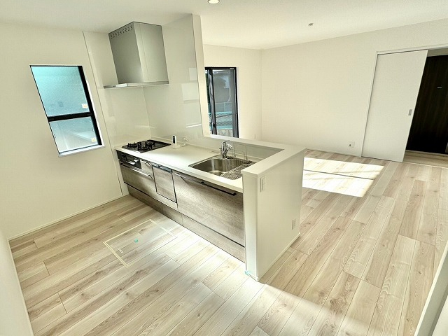 食洗機・浄水器が標準装備のキッチンや、浴室乾燥機付きのユニットバス、鏡裏全面収納の洗面化粧台、フリーワックスフローリング、大型玄関収納、Low-E複層ガラスなど充実の設備の住宅です♪