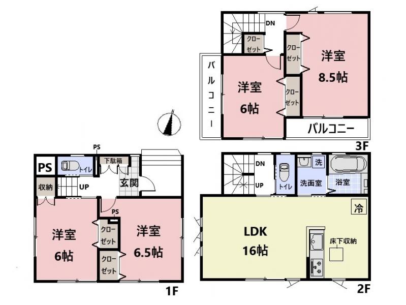 | 間取り | 4LDK | 建物構造 | 3階建て 構造:木造 |