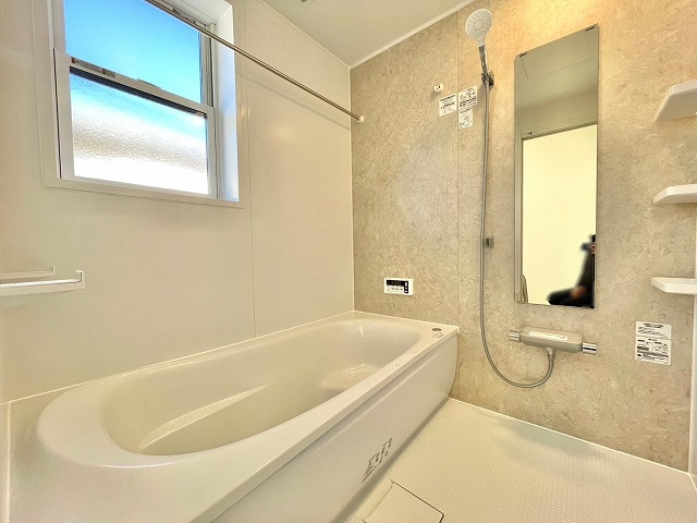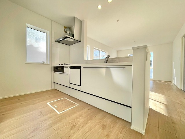 食洗機・浄水器が標準装備のキッチンや、浴室乾燥機付きのユニットバス、鏡裏全面収納の洗面化粧台、フリーワックスフローリング、大型玄関収納、Low-E複層ガラスなど充実の設備の住宅です♪