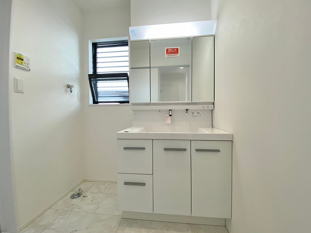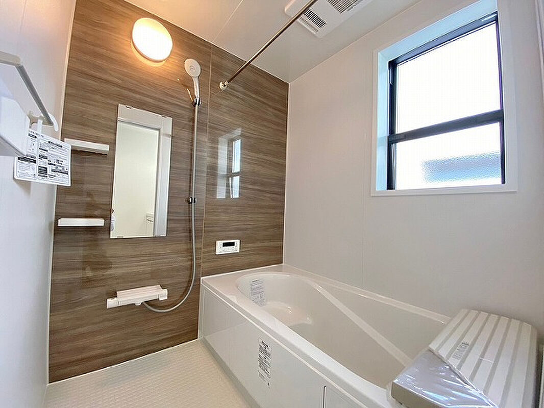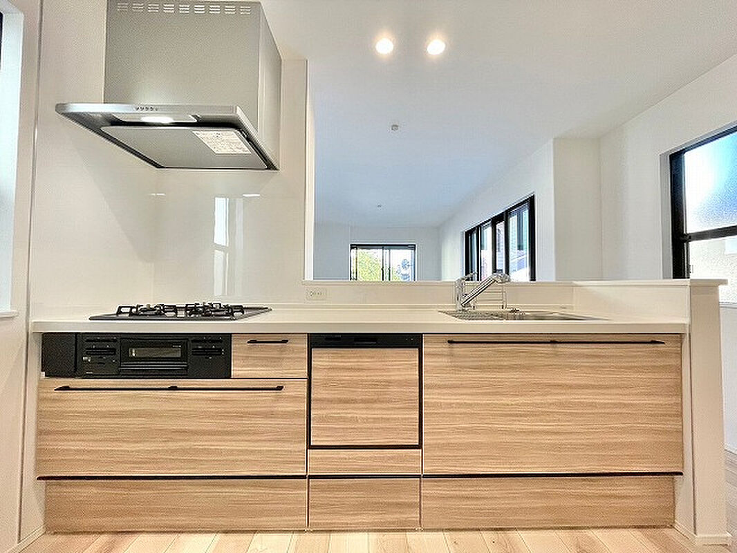 食洗機・浄水器が標準装備のキッチンや、浴室乾燥機付きのユニットバス、鏡裏全面収納の洗面化粧台、フリーワックスフローリング、大型玄関収納、Low-E複層ガラスなど充実の設備の住宅です♪