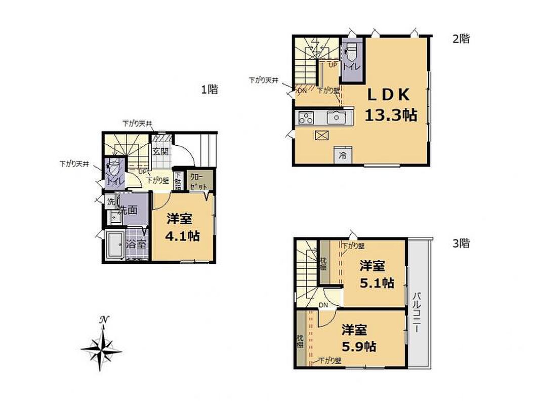 | 間取り | 3LDK | 建物構造 | 3階建て 構造:木造 |