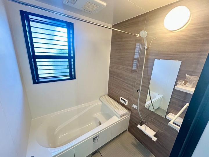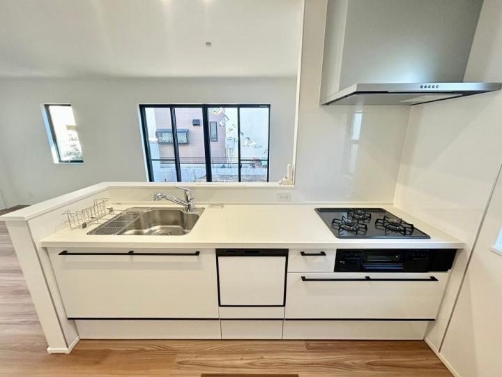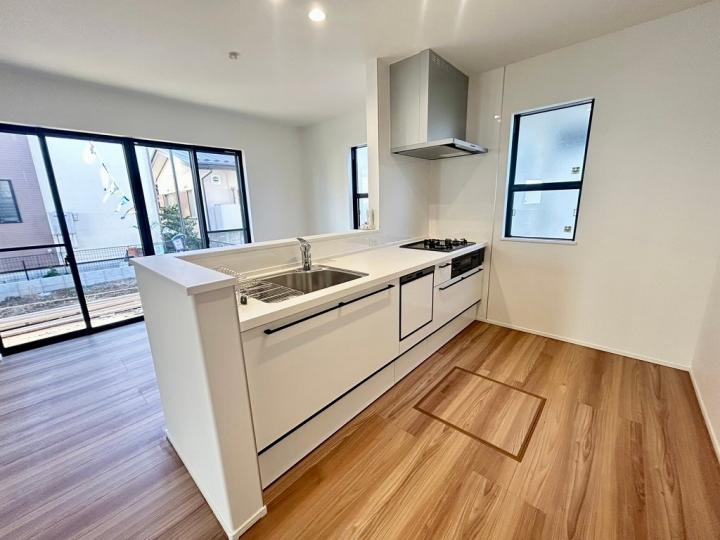 食洗機・浄水器が標準装備のキッチンや、浴室乾燥機付きのユニットバス、鏡裏全面収納の洗面化粧台、フリーワックスフローリング、大型玄関収納、Low-E複層ガラスなど充実の設備の住宅です♪