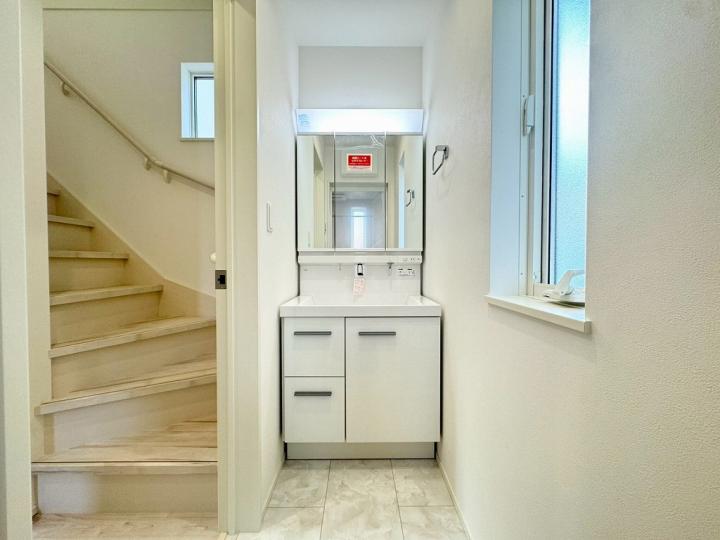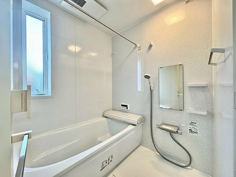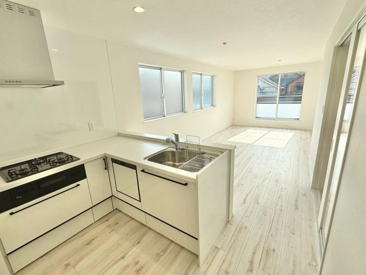 食洗機・浄水器が標準装備のキッチンや、浴室乾燥機付きのユニットバス、鏡裏全面収納の洗面化粧台、フリーワックスフローリング、玄関収納、Low-E複層ガラスなど充実の設備の住宅です♪