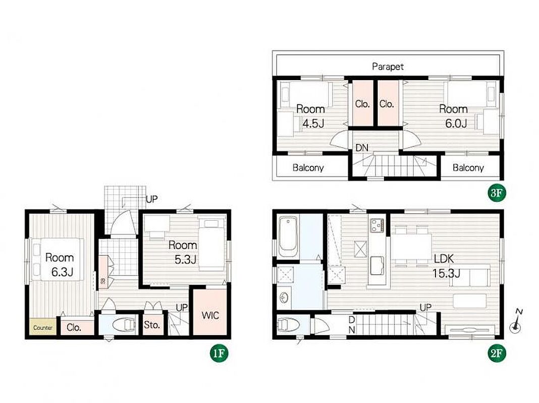 | 間取り | 4LDK | 建物構造 | 3階建て 構造:木造 |
