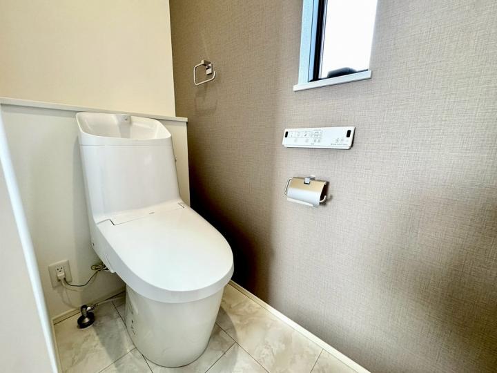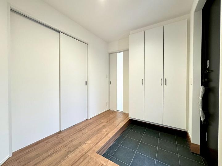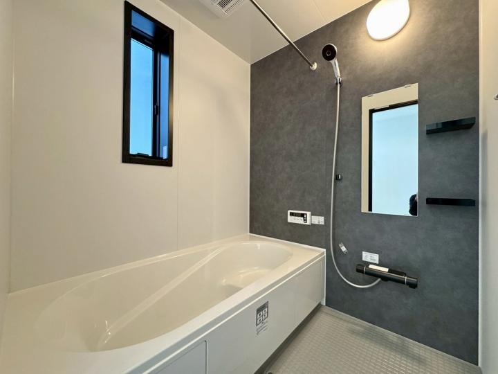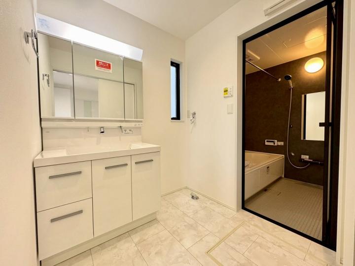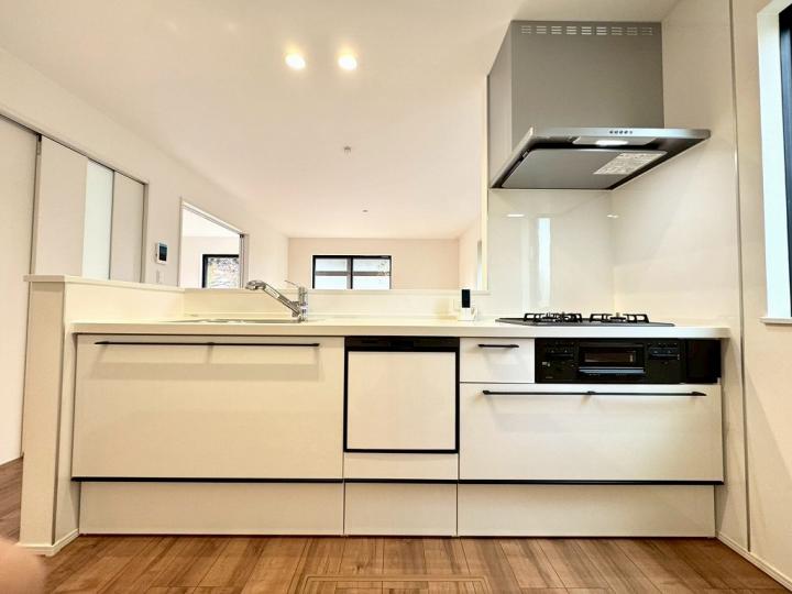 食洗機・浄水器が標準装備のキッチンや、浴室乾燥機付きのユニットバス、鏡裏全面収納の洗面化粧台、フリーワックスフローリング、大型玄関収納、Low-E複層ガラスなど充実の設備の住宅です♪