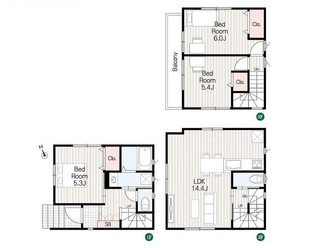 | 間取り | 3LDK | 建物構造 | 3階建て 構造:木造 |