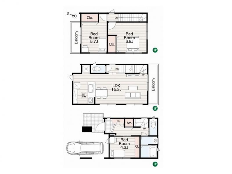 | 間取り | 3LDK | 建物構造 | 3階建て 構造:木造 |