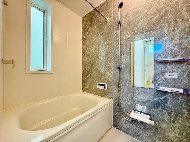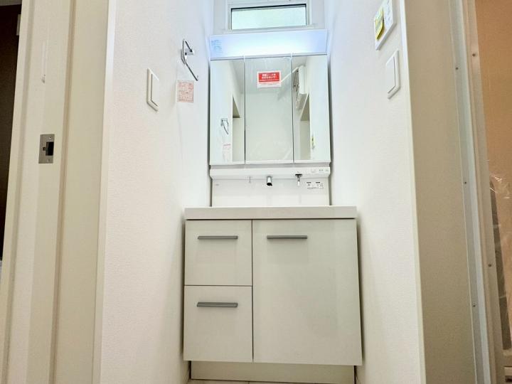 食洗機・浄水器が標準装備のキッチンや、浴室乾燥機付きのユニットバス、鏡裏全面収納の洗面化粧台、フリーワックスフローリング、大型玄関収納、Low-E複層ガラスなど充実の設備の住宅です♪