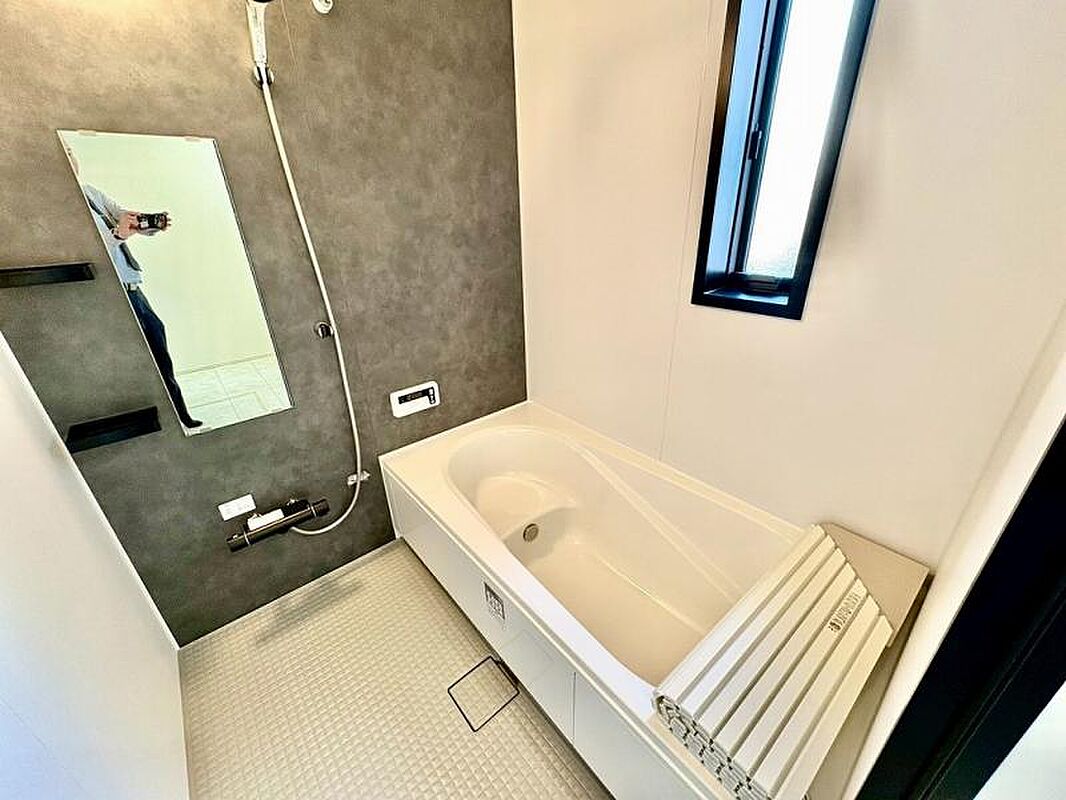 食洗機・浄水器が標準装備のキッチンや、浴室乾燥機付きのユニットバス、鏡裏全面収納の洗面化粧台、フリーワックスフローリング、大型玄関収納、Low-E複層ガラスなど充実の設備の住宅です♪