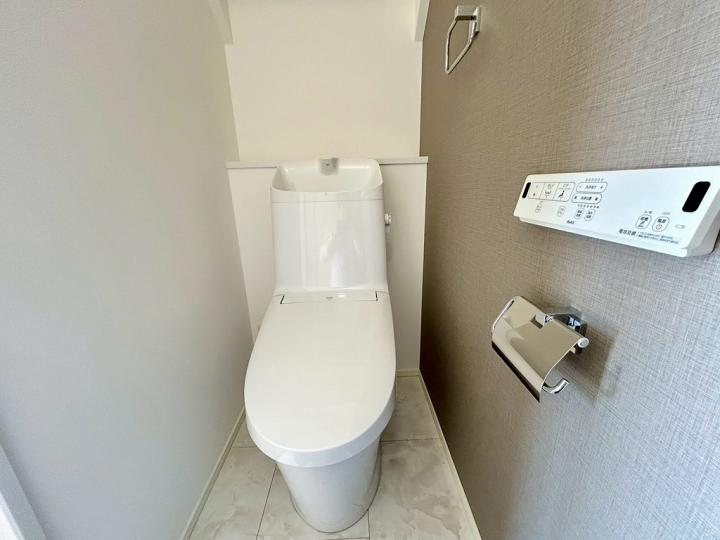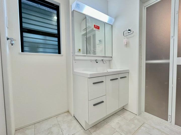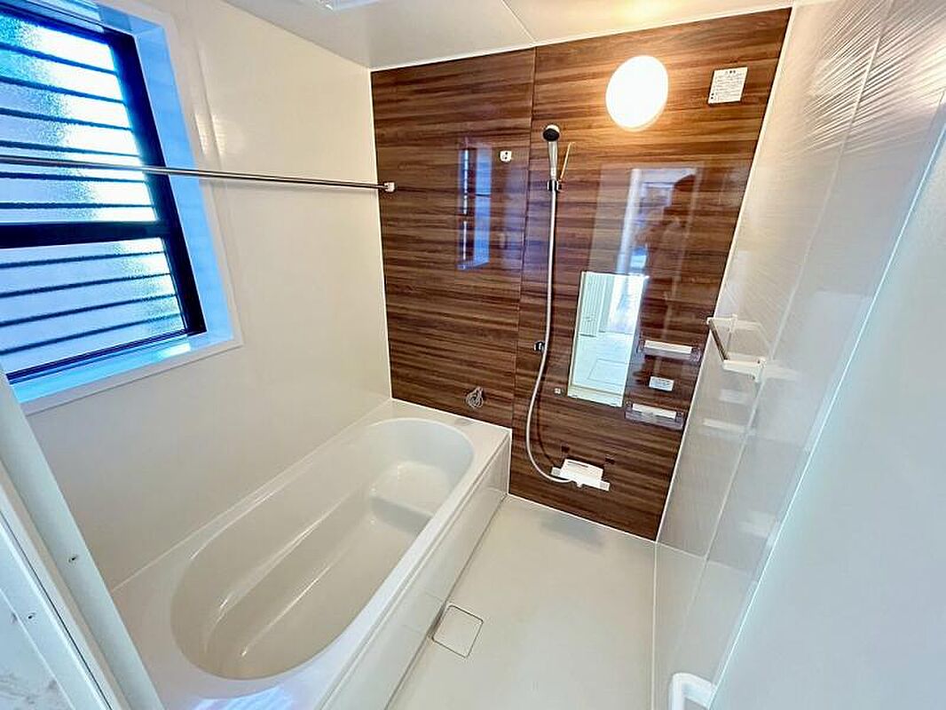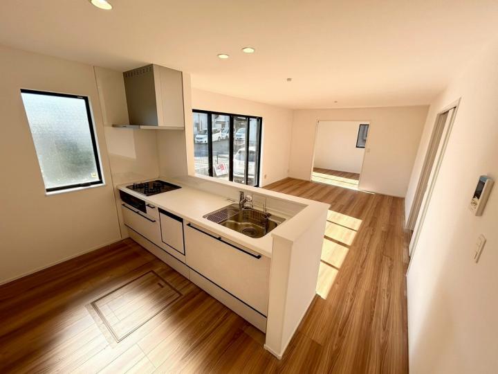 食洗機・浄水器が標準装備のキッチンや、浴室乾燥機付きのユニットバス、鏡裏全面収納の洗面化粧台、フリーワックスフローリング、大型玄関収納、Low-E複層ガラスなど充実の設備の住宅です♪