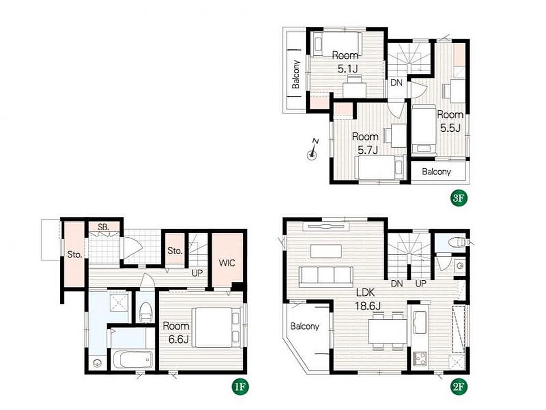 | 間取り | 4LDK | 建物構造 | 3階建て 構造:木造 |