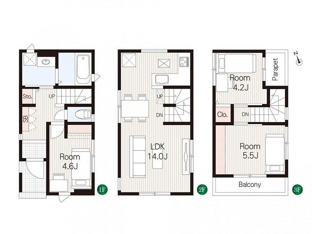 | 間取り | 3LDK | 建物構造 | 3階建て 構造:木造 |