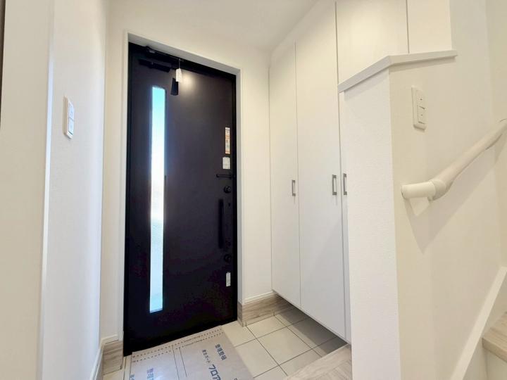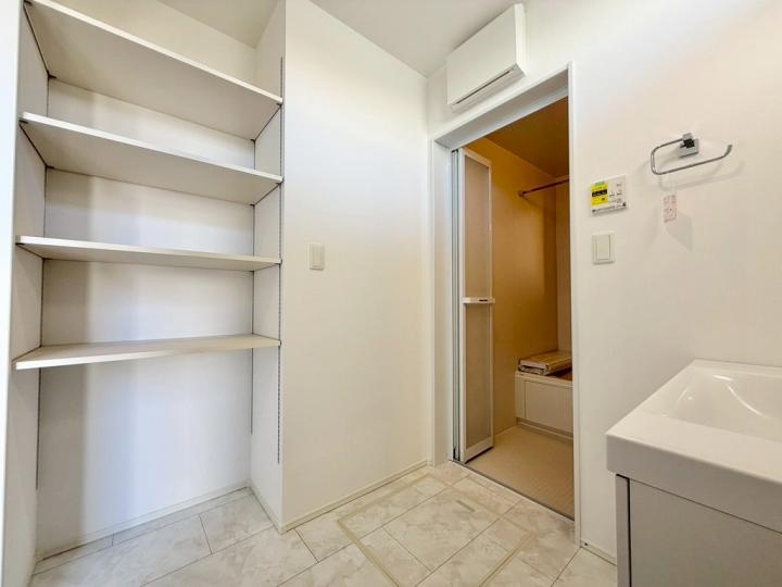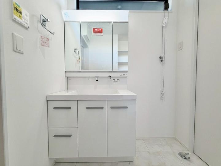 食洗機・浄水器が標準装備のキッチンや、浴室乾燥機付きのユニットバス、鏡裏全面収納の洗面化粧台、フリーワックスフローリング、大型玄関収納、Low-E複層ガラスなど充実の設備の住宅です♪