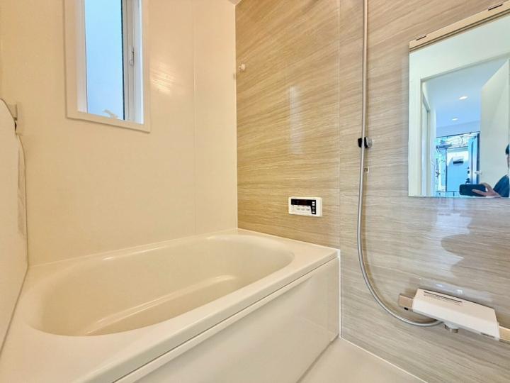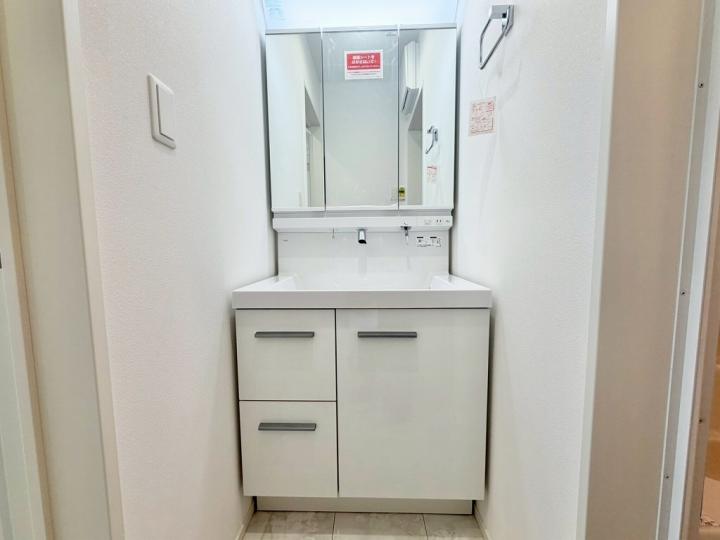 食洗機・浄水器が標準装備のキッチンや、浴室乾燥機付きのユニットバス、鏡裏全面収納の洗面化粧台、フリーワックスフローリング、玄関収納、Low-E複層ガラスなど充実の設備の住宅です♪