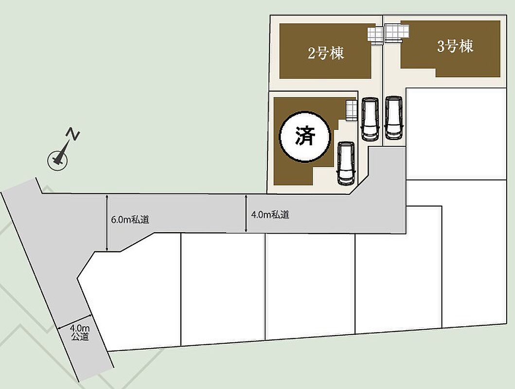 | 建物面積 | 96.88m2~101.85m2 | 土地面積 | 109.48m2~109.56m2<私道負担あり:190.00m2×持分1/9> |
