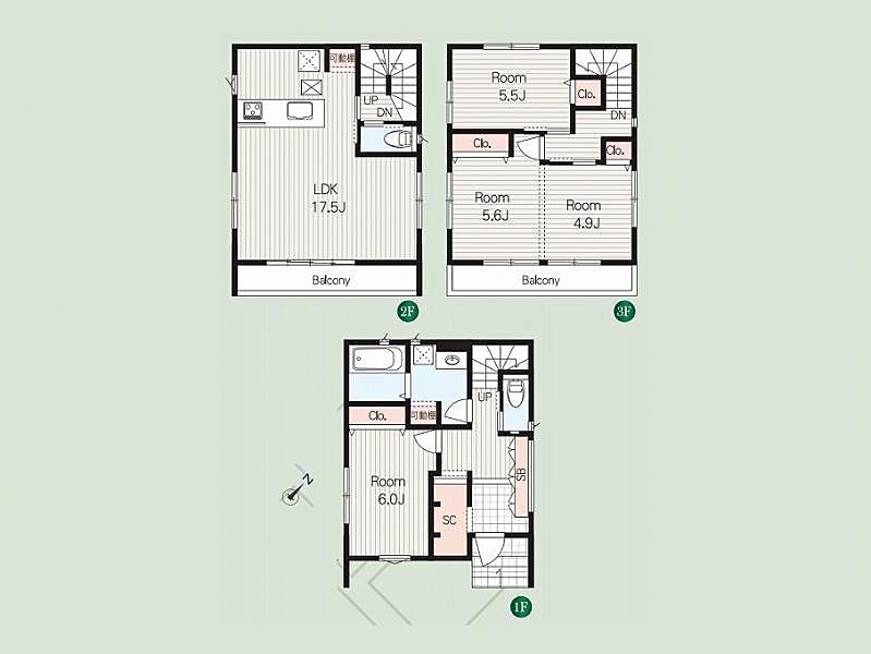 | 間取り | 3LDK | 建物構造 | 3階建て 構造:木造 |