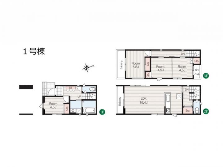 | 間取り | 3LDK | 建物構造 | 3階建て 構造:木造 |