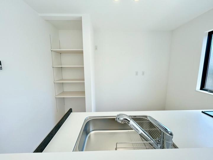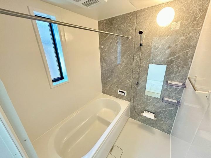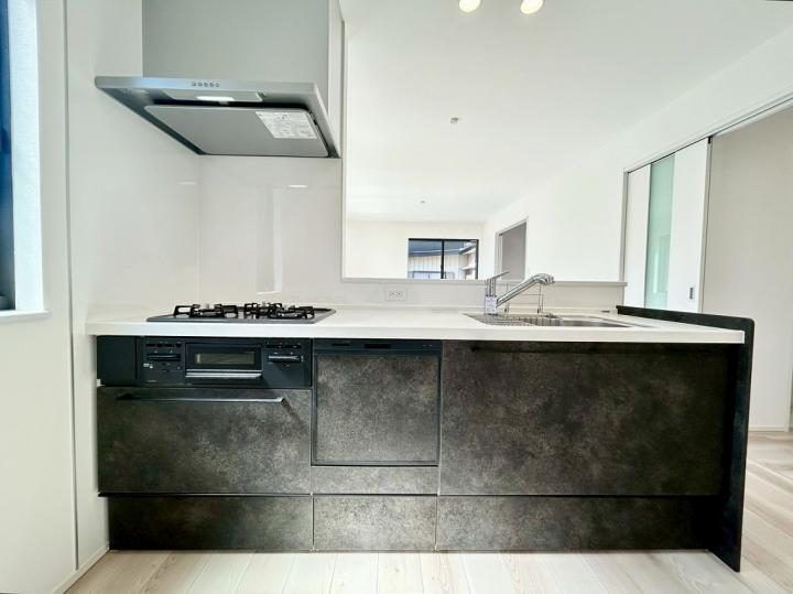 食洗機・浄水器が標準装備のキッチンや、浴室乾燥機付きのユニットバス、鏡裏全面収納の洗面化粧台、フリーワックスフローリング、大型玄関収納、Low-E複層ガラスなど充実の設備の住宅です♪