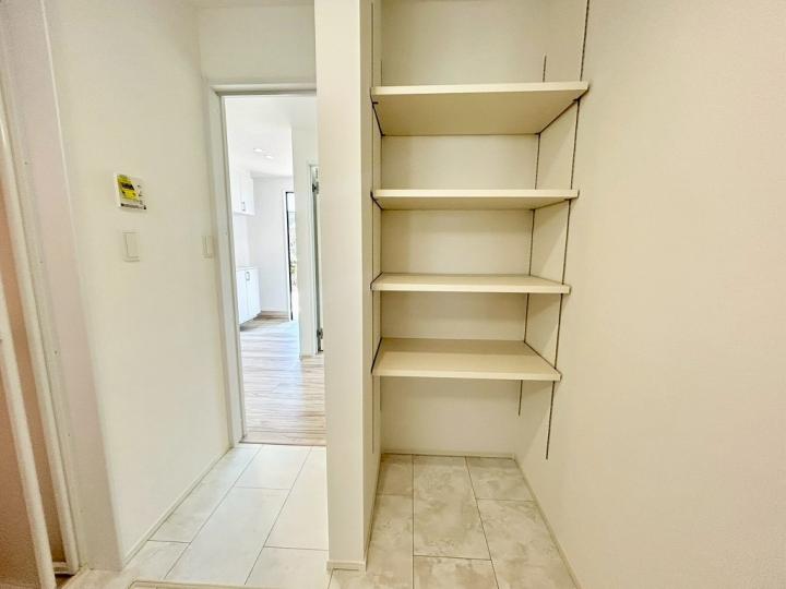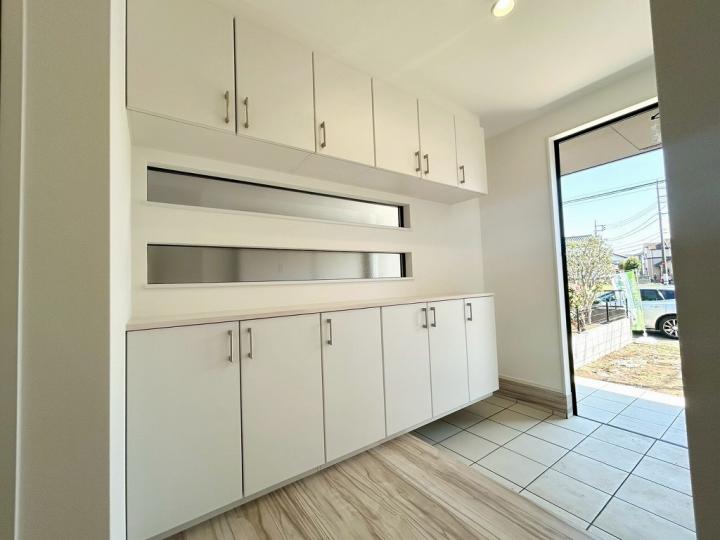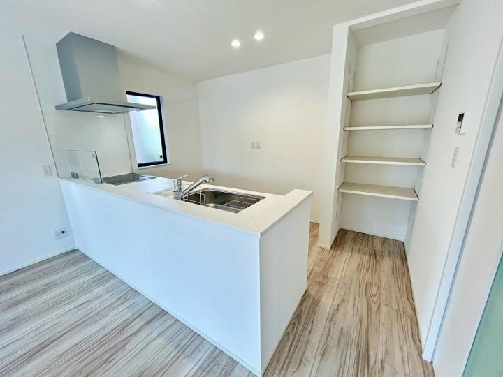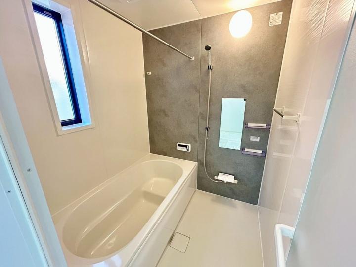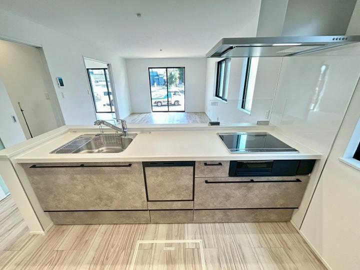 食洗機・浄水器が標準装備のキッチンや、浴室乾燥機付きのユニットバス、鏡裏全面収納の洗面化粧台、フリーワックスフローリング、大型玄関収納、Low-E複層ガラスなど充実の設備の住宅です♪