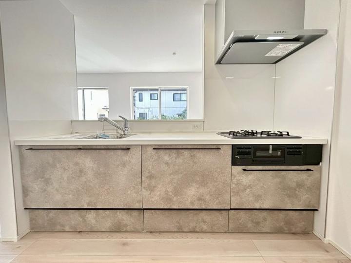 オールスライド収納で浄水器が標準装備のキッチンや、鏡裏全面収納の洗面化粧台、フリーワックスフローリング、玄関収納、Low-E複層ガラスなど充実の設備の住宅です♪