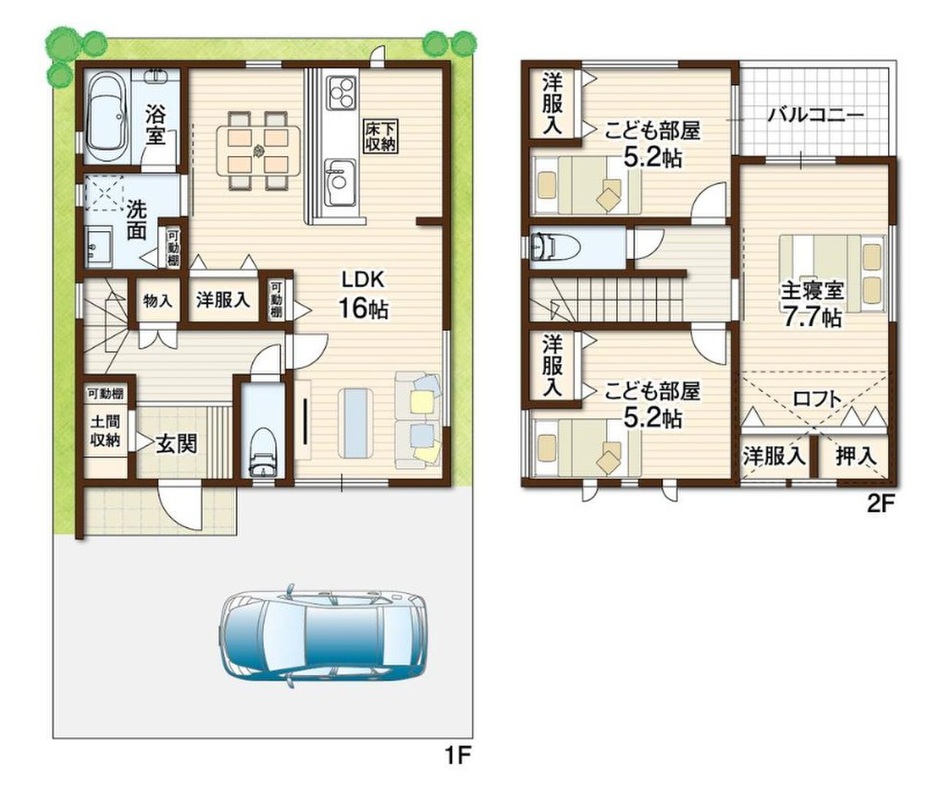 - ※完成予想図やCG合成画像は、門塀・植栽・庭・外観等、実際とは多少異なる場合があります。
