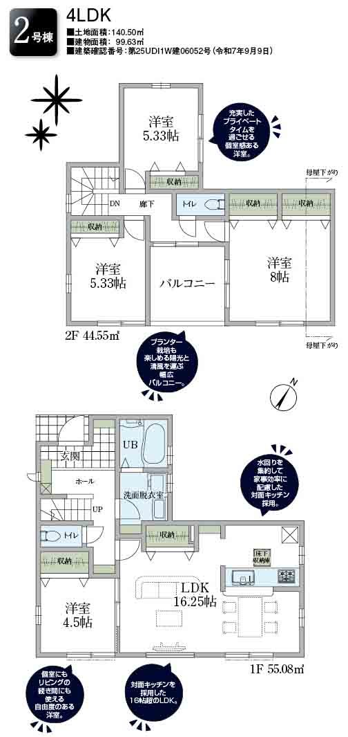 | 建物面積 | 99.63m2~100.44m2 | 土地面積 | 138.75m2~140.5m2 |