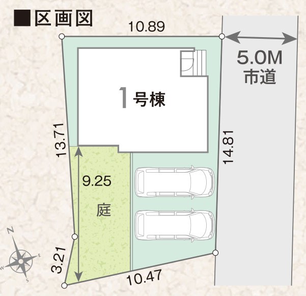 | 駐車場 | 2台 | 道路の幅員 | 1号棟:東5m |
