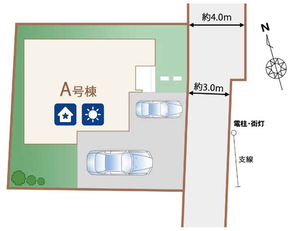 | 駐車場 | 2台 | 道路の幅員 | A号棟:東3m |