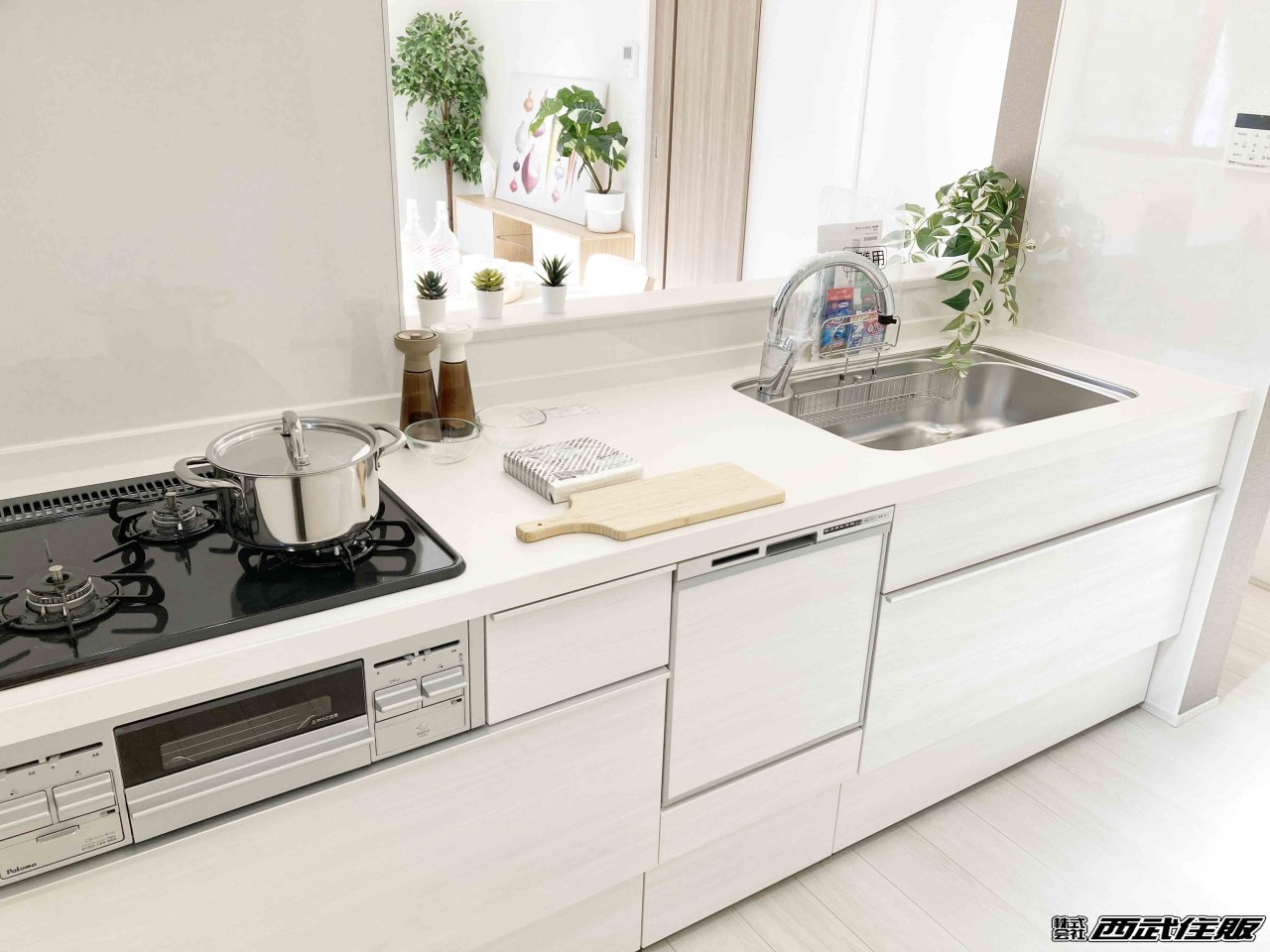 ・対面キッチンは料理をしながらリビングの様子を見守れる便利なデザイン