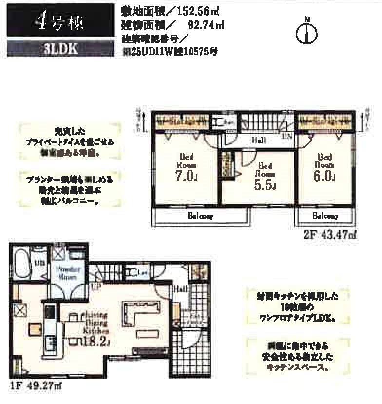 4号棟 間取り 3LDK 価格 3180万円 建物面積 92.74m2 土地面積 152.56m2 -