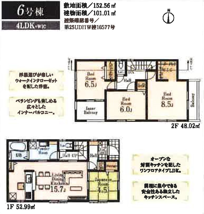 6号棟 間取り 4LDK 価格 3180万円 建物面積 101.01m2 土地面積 152.56m2 -