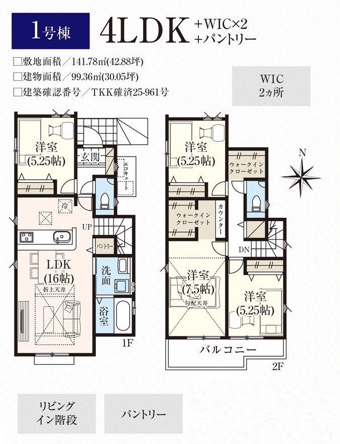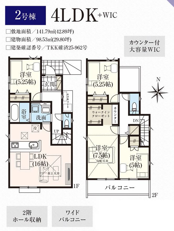 | 建物面積 | 98.53m2~99.36m2 | 土地面積 | 141.78m2~141.79m2 |