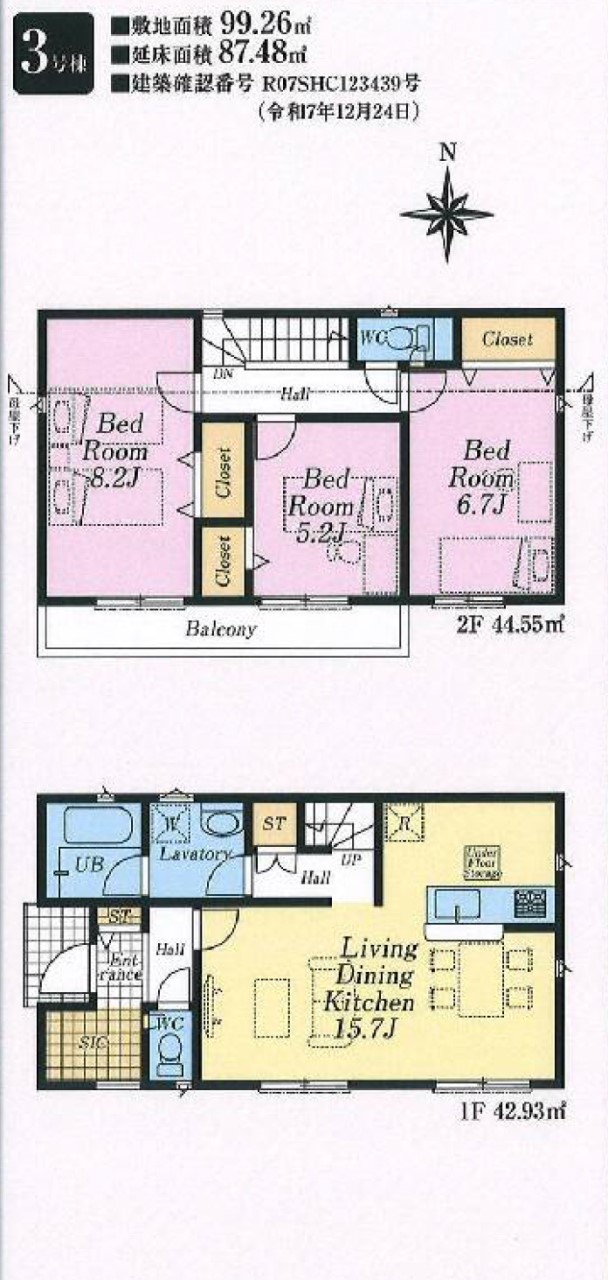 | 建物面積 | 87.48m2~95.58m2 | 土地面積 | 99.26m2~121.99m2 |