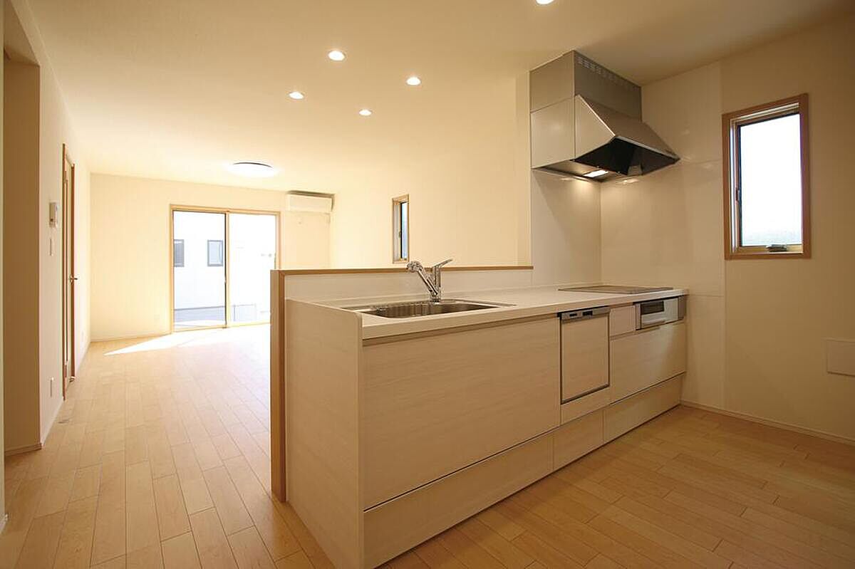 広々とした対面キッチンは、リビングで寛ぐご家族と会話を楽しみながらお料理が出来ます。