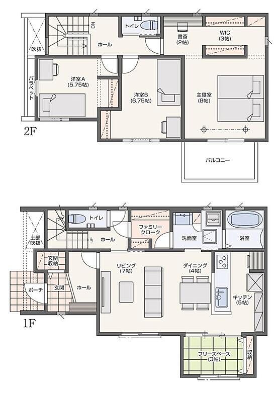 | 間取り | 3LDK+S(納戸)・3LDK+2S(納戸) | 建物構造 | 木造枠組壁工法(ツーバイフォー工法) |
