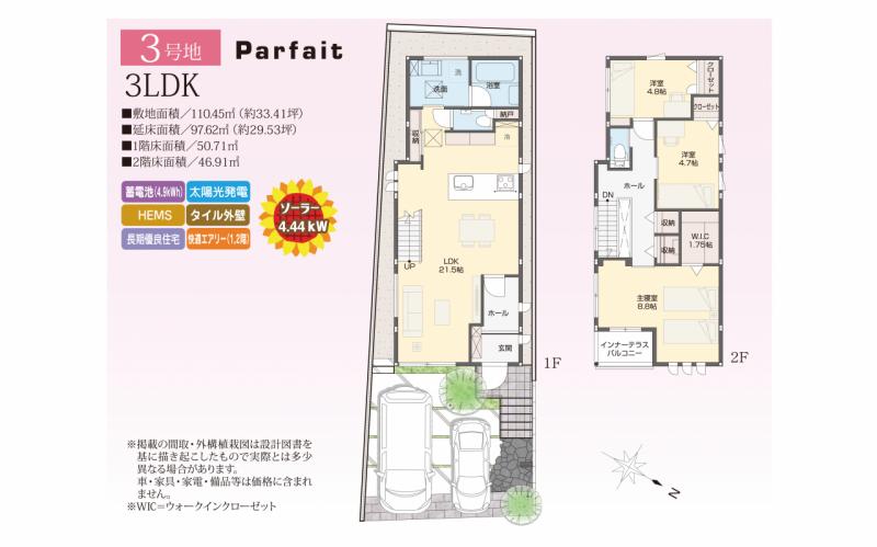 - ※完成予想図やCG合成画像は、門塀・植栽・庭・外観等、実際とは多少異なる場合があります。