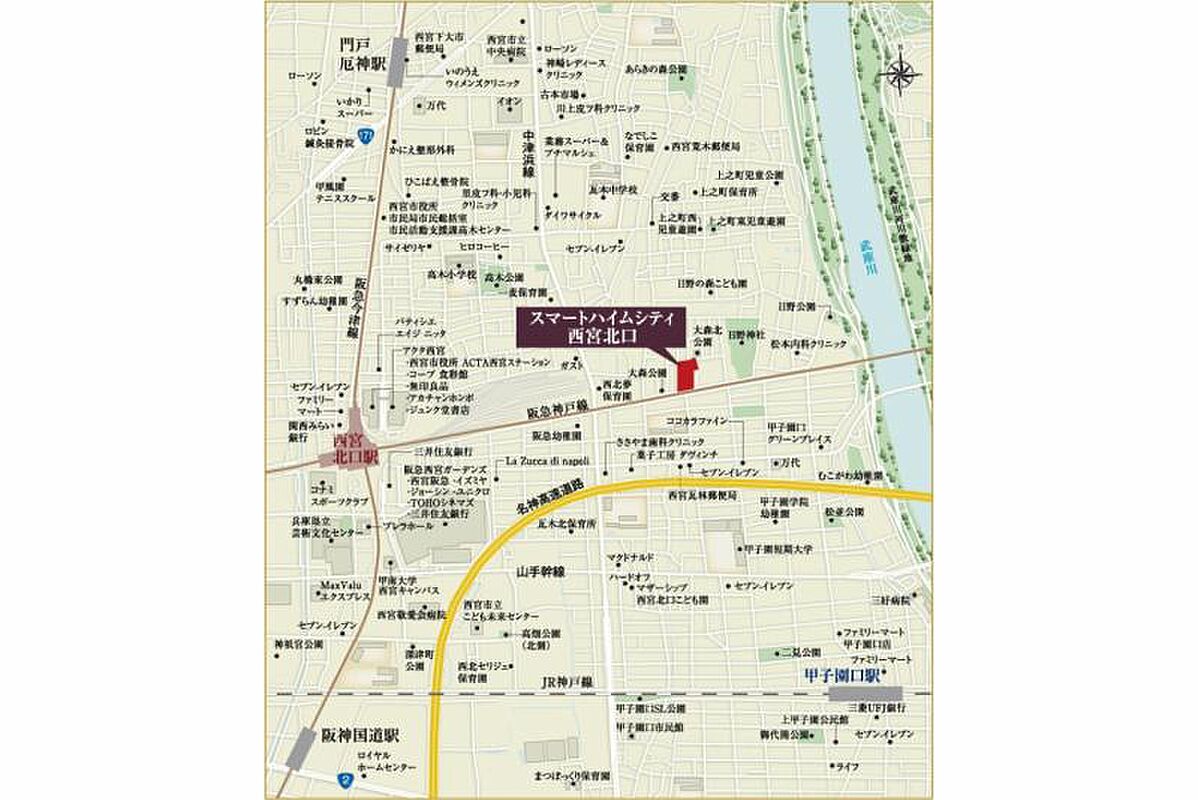 阪急今津線「西宮北口」駅 徒歩13分 JR東海道・山陽本線「甲子園口」駅 徒歩19分 |