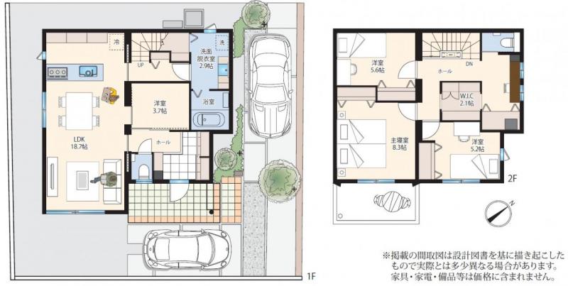 - ※完成予想図やCG合成画像は、門塀・植栽・庭・外観等、実際とは多少異なる場合があります。