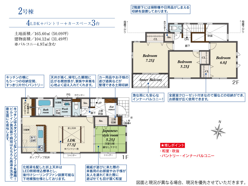 | 建物面積 | 104.12m2(約31.49坪)~105.57m2(約31.93坪) | 土地面積 | 165.60m2(約50.09坪)~167.89m2(約50.78坪) |
