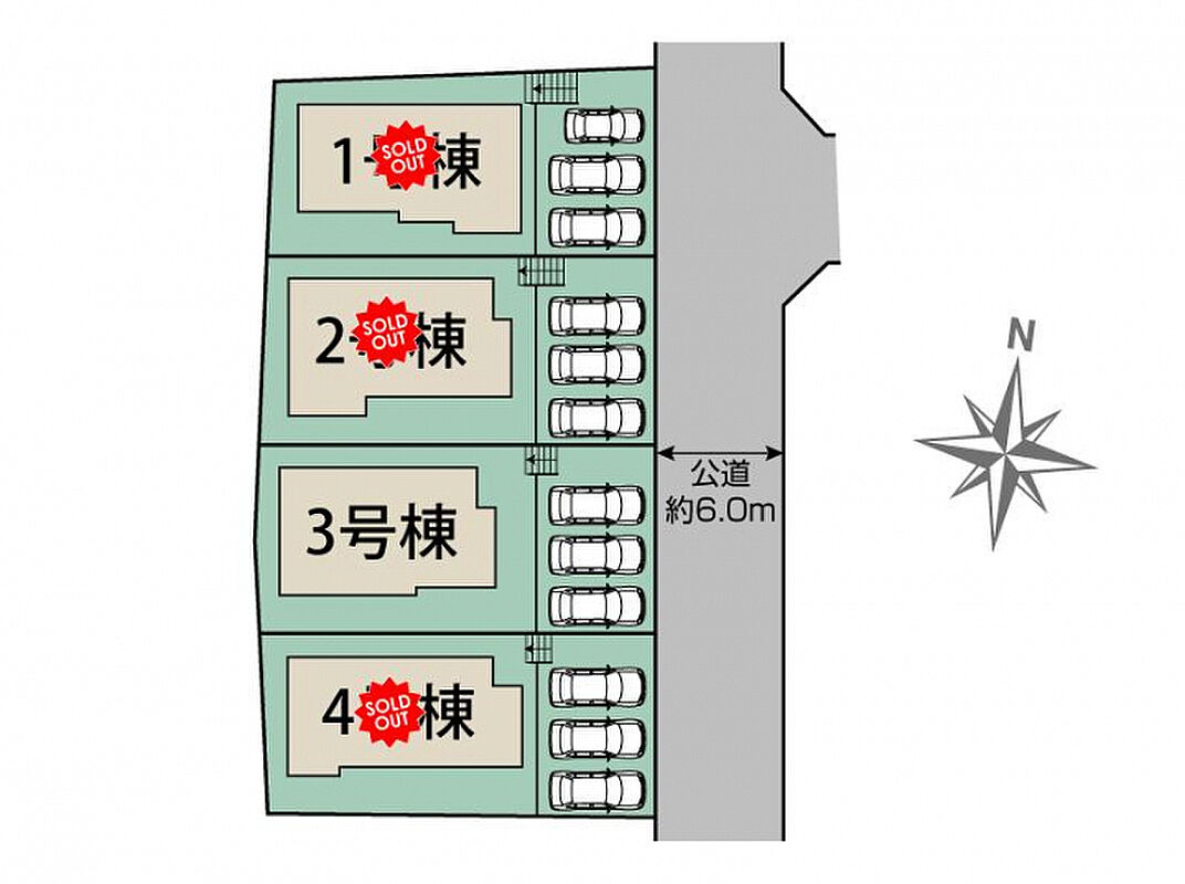 | 駐車場 | 3台 | 道路の幅員 | 東側約6.0m公道 |
