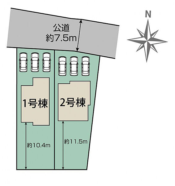 | 駐車場 | 3台 | 道路の幅員 | 北7.5m公道 |