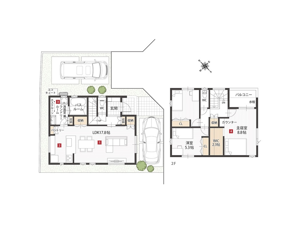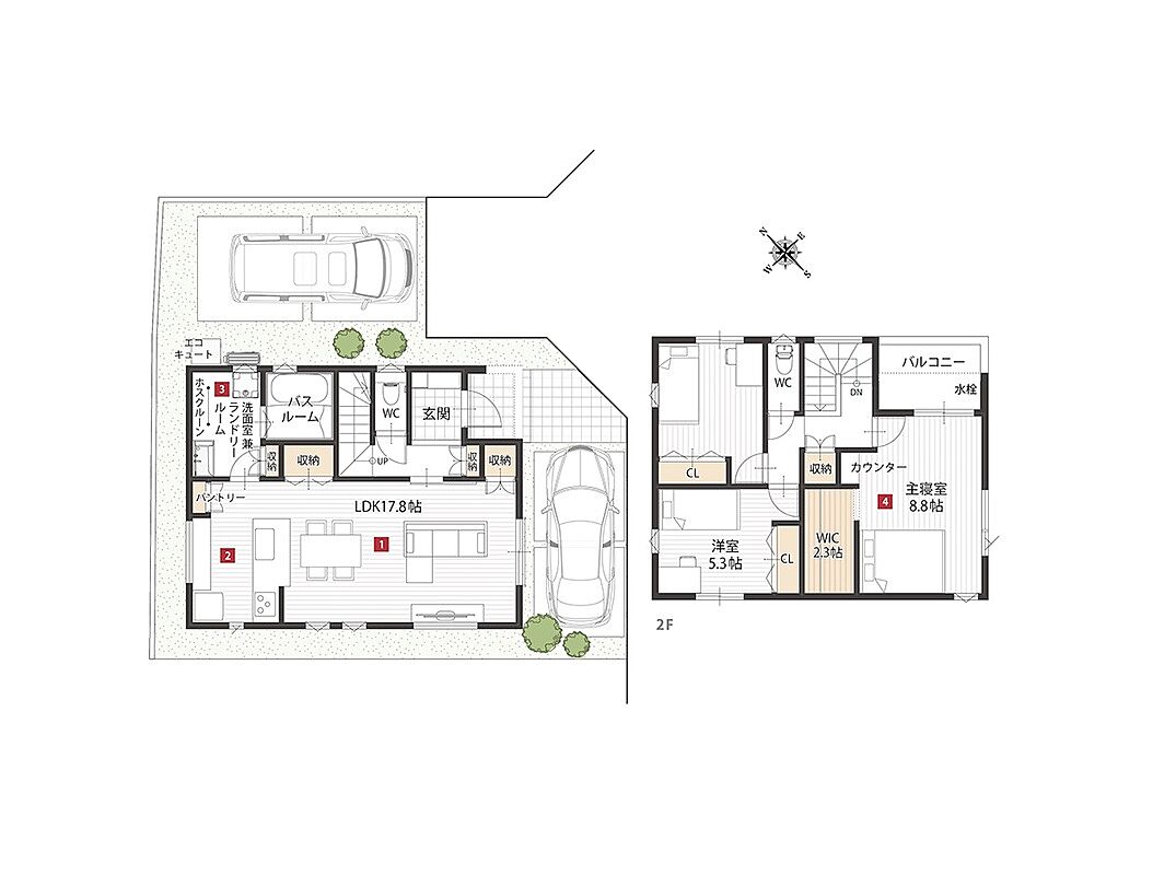 - ※完成予想図やCG合成画像は、門塀・植栽・庭・外観等、実際とは多少異なる場合があります。