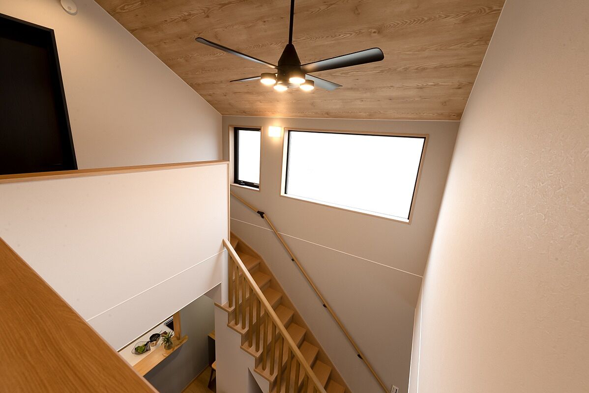 1階と2階がつながり、縦方向に視界が抜ける吹抜仕様。2階ホールから1階のご家族に声を掛けたり、ご家族が自然とつながる一体感も魅力です。