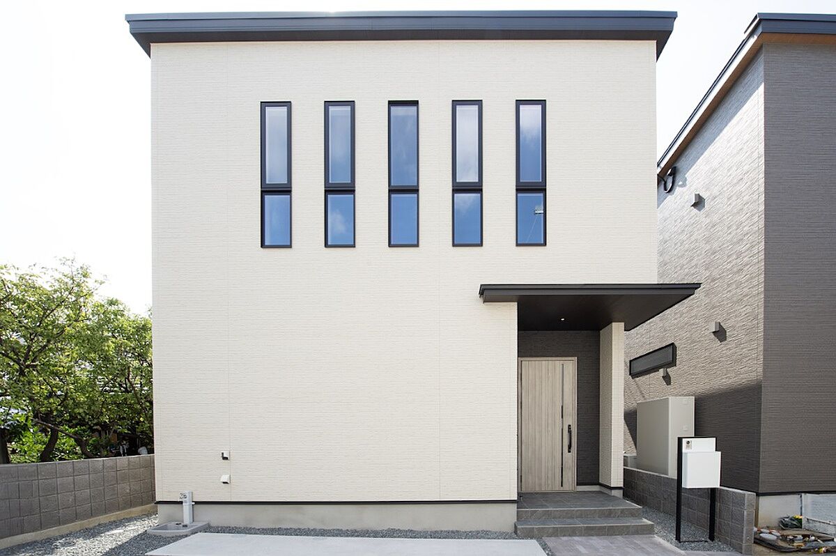 2連の縦すべり出し窓がリズミカルに並び、外観のアクセントに。外...