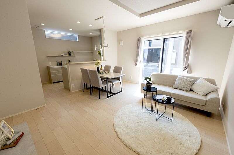 ホワイトを基調とした明るいLDKはリビング、ダイニング、キッチ...
