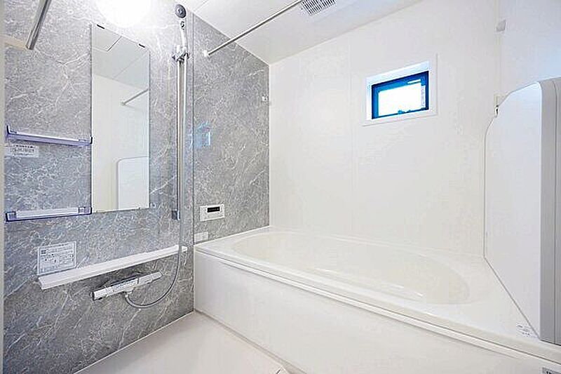 幅員6mの公道に面した新築分譲住宅。日々の疲れを癒す浴室は一坪タイプです。