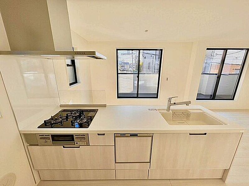 ご家族の顔が見渡せる対面式キッチン採用。カースペース付の新築分譲住宅です。