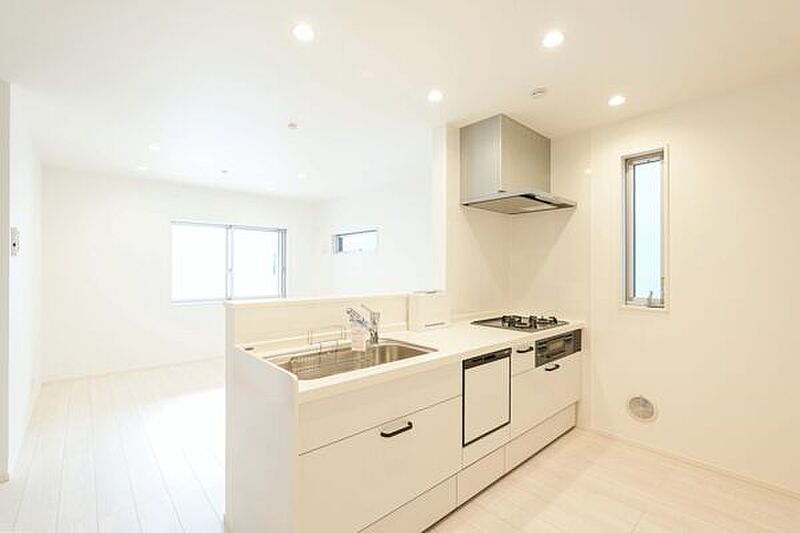 南向きの新築戸建。家事をしながら家族の顔が見渡せる対面式キッチン採用です。