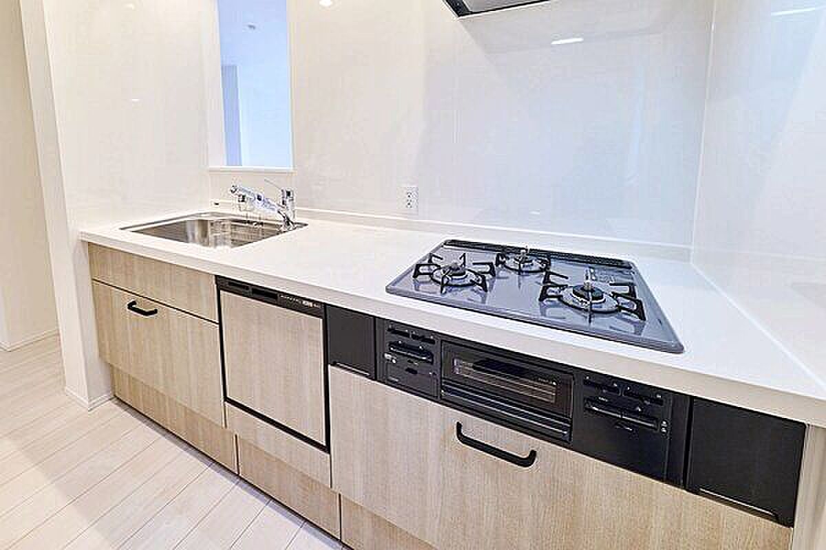 玄関収納は便利なミラー付き。食洗機や浴室乾燥機等の設備が充実しています。